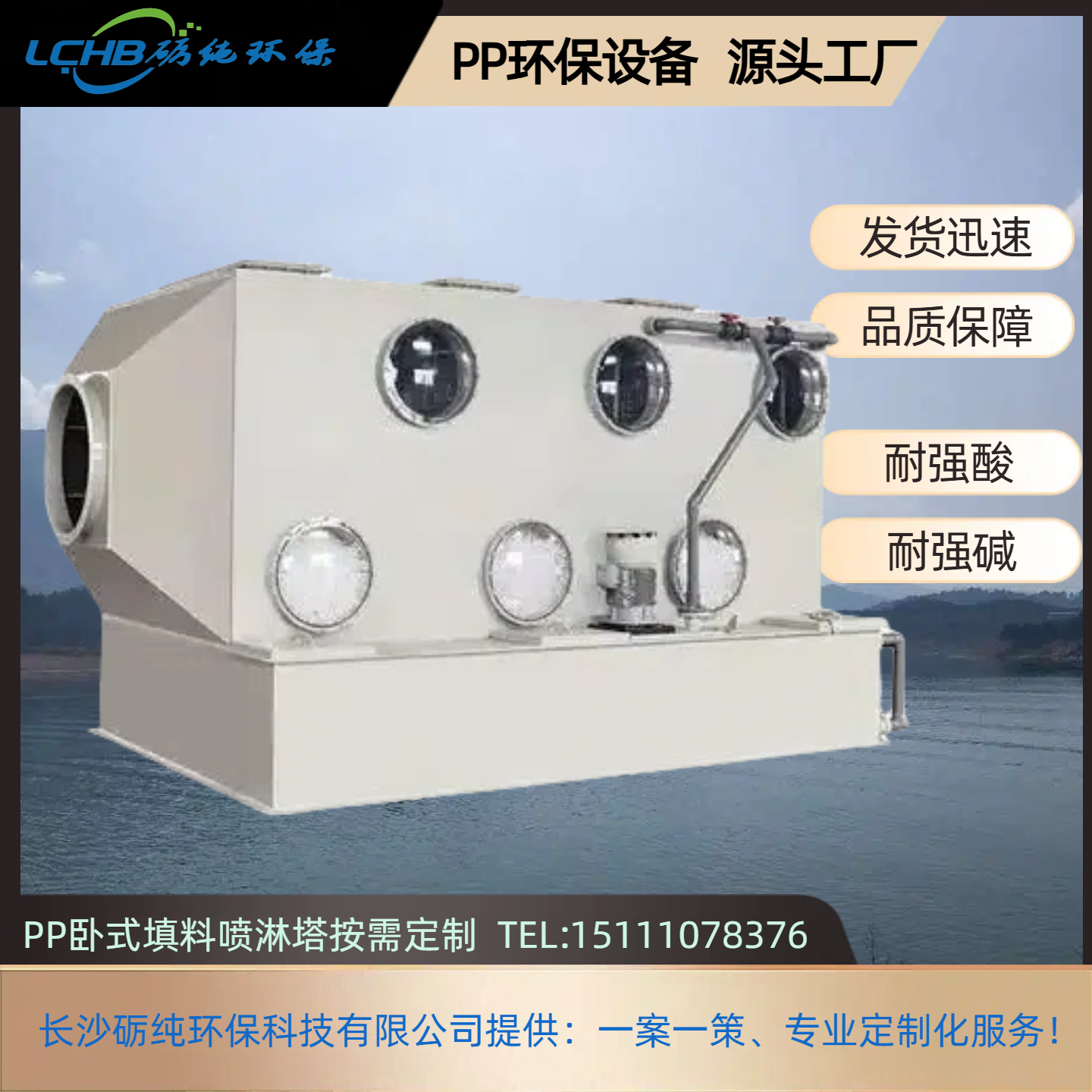 - 塔体:卧式矩形 / 圆柱形聚丙烯(PP)结构,采用分段式设计便于检修,底部设 1°-3° 倾斜集液槽,确保积液彻底排出;