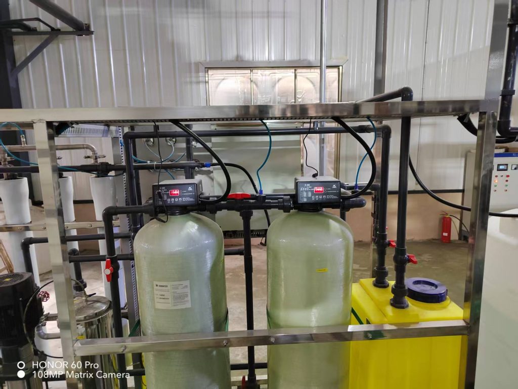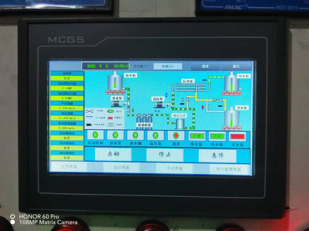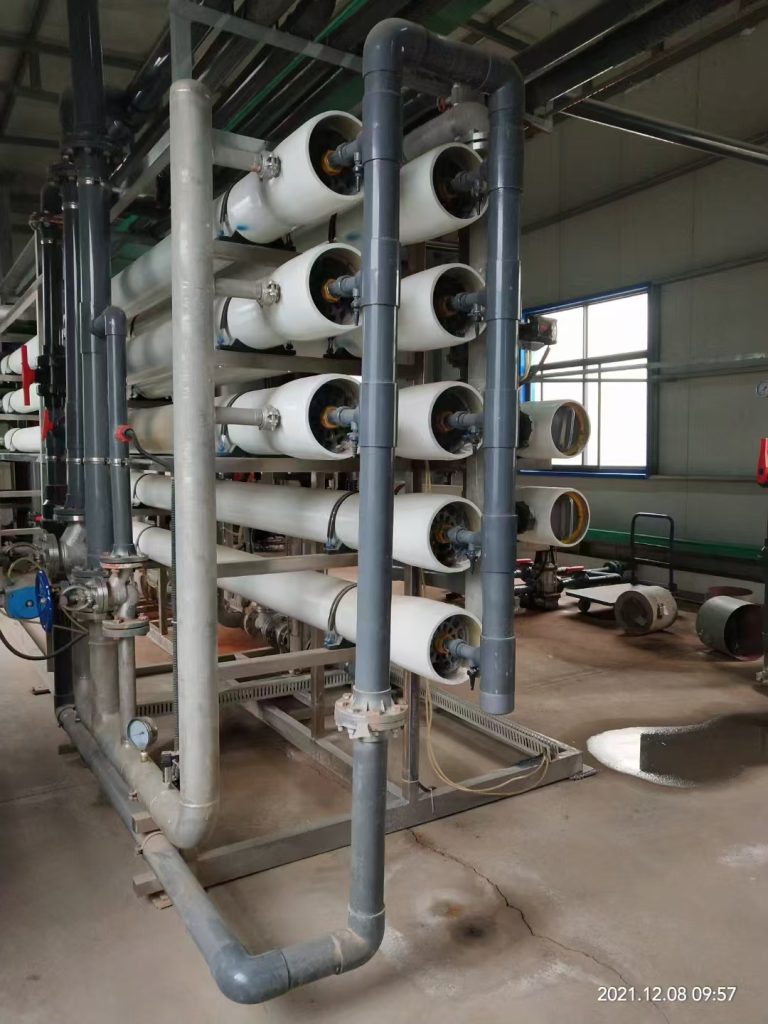 贵州某项目浓盐水MVR蒸汽锅炉用水,水源为山泉水,采用砂滤+炭滤+一级二段反渗透膜,设计产水量为1m3/h,稳定达标排放。