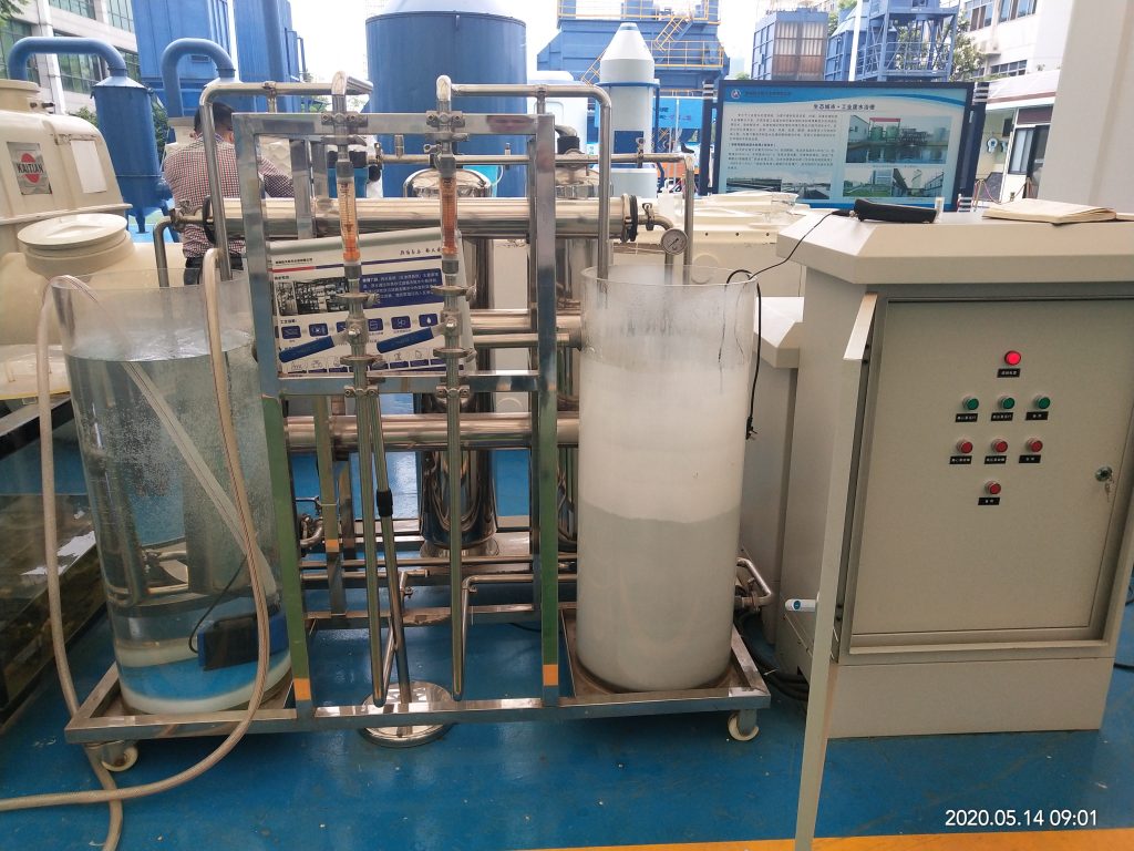 RO膜实验机组,设计水量1.5m3/h,炭滤+砂滤+一级二段反渗透膜设备。