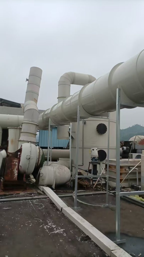 湖南方正达电子车间废气PPs阻燃风管安装,及喷淋塔维修维护。