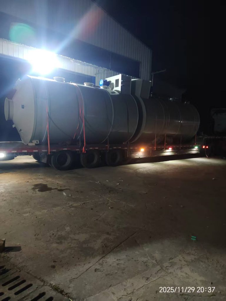 湖南益阳某电子企业,2.8米*54.5米阻燃PP喷淋塔,2层喷淋一层除雾,循环泵5.5kw。